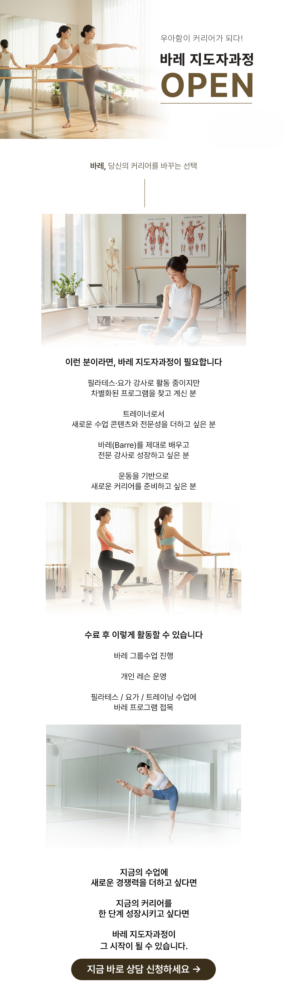 우아함이 커리어가 되다! 바레 지도자과정 오픈!!